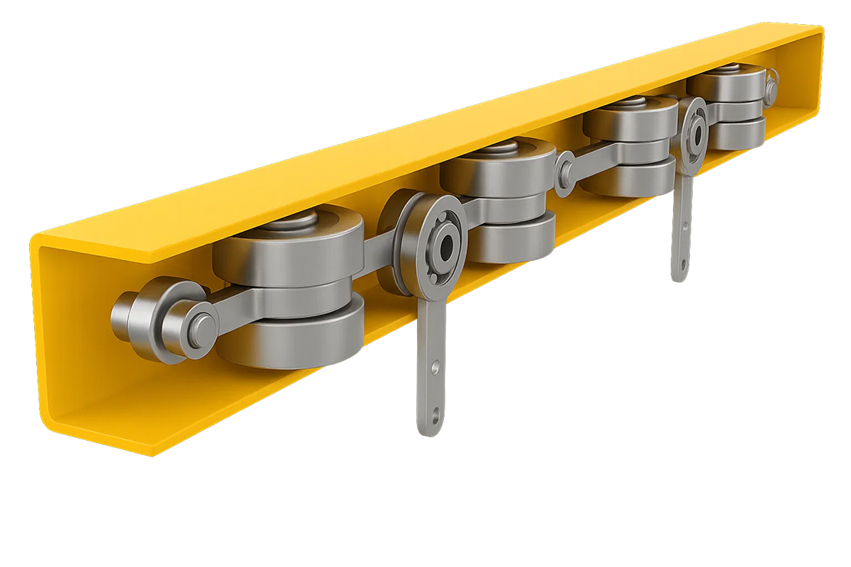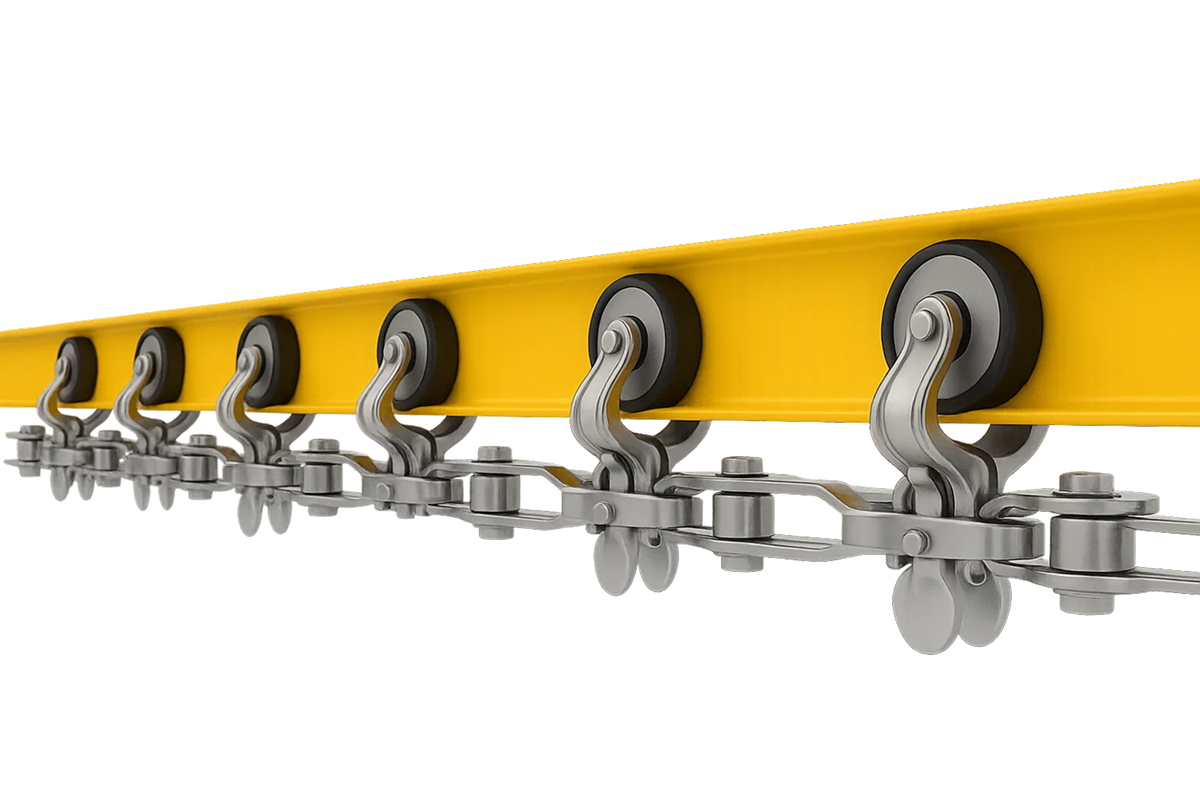 - Chains & Trolleys: Durable, wear-resistant chains and robust trolleys/carriers designed for specific loads and environments.