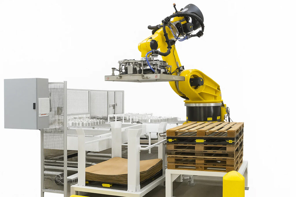 LEADOR’s palletizing and depalletizing solutions automate the placement and removal of boxes, cartons, bags, or other standardized loads on pallets. Systems include robotic arms, gantry mechanisms, layer-forming devices, and smart sensors to adapt to product orientation, shape, and stack patterns.